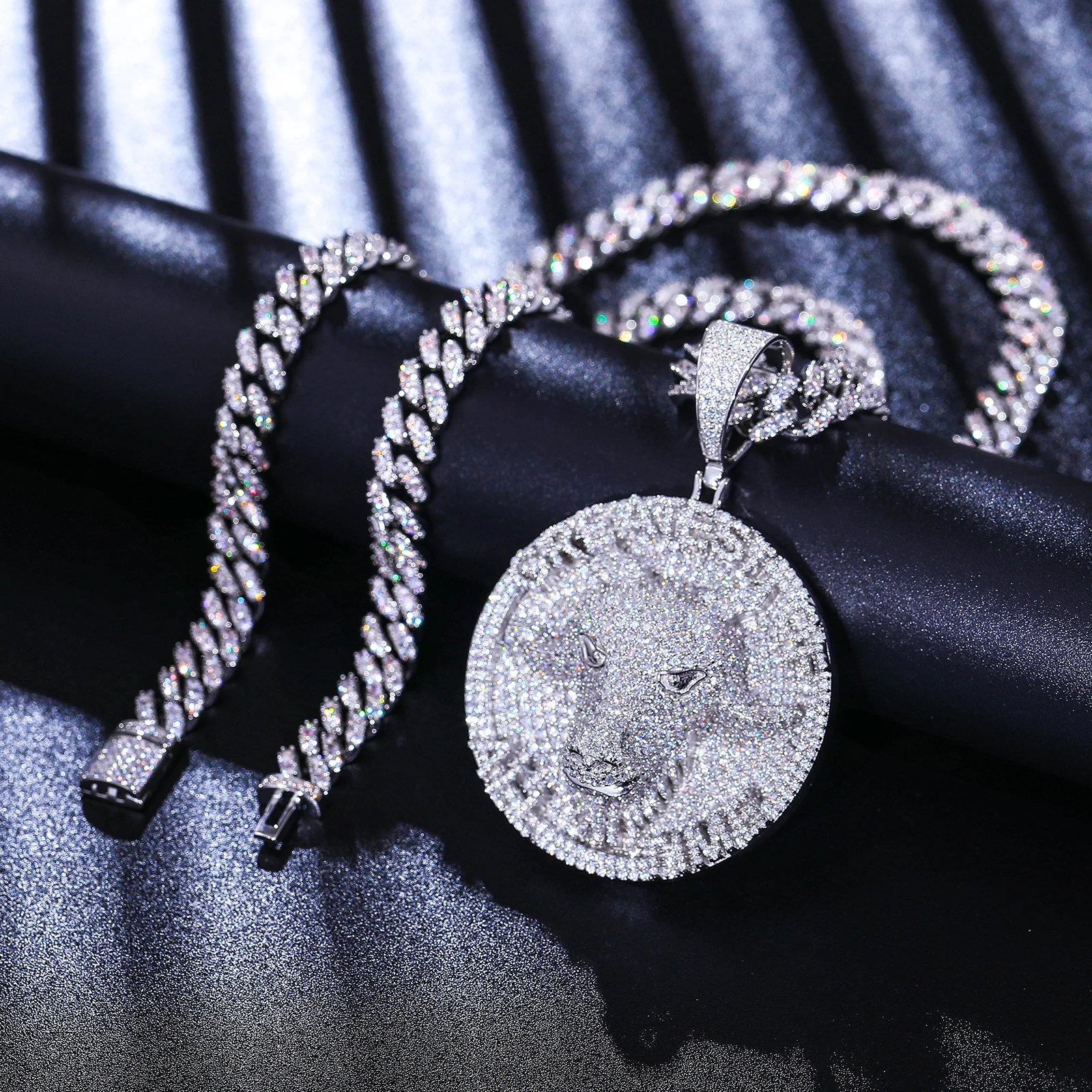 Full Of Moissanite Personality Animal Goat Head Necklace Pendant Men Women 925 Sterling Silver Iced Out Hip Hop Party Jewelry