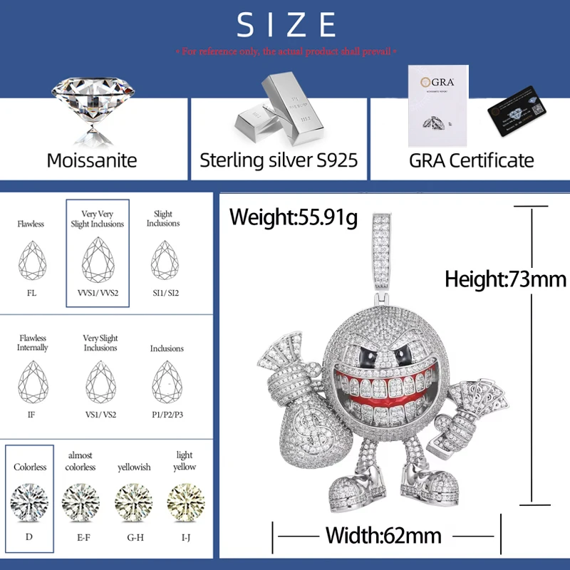 High Quality MoneyBag Pendant Necklace Moissanite Iced Out HipHop Bling Jewelry For Men/Women 925 Sterling Silver Trendy Pendant