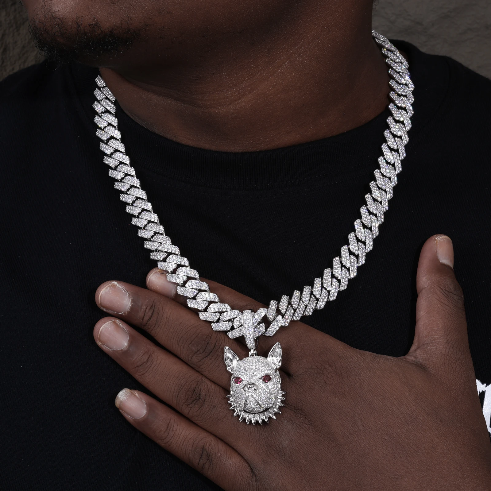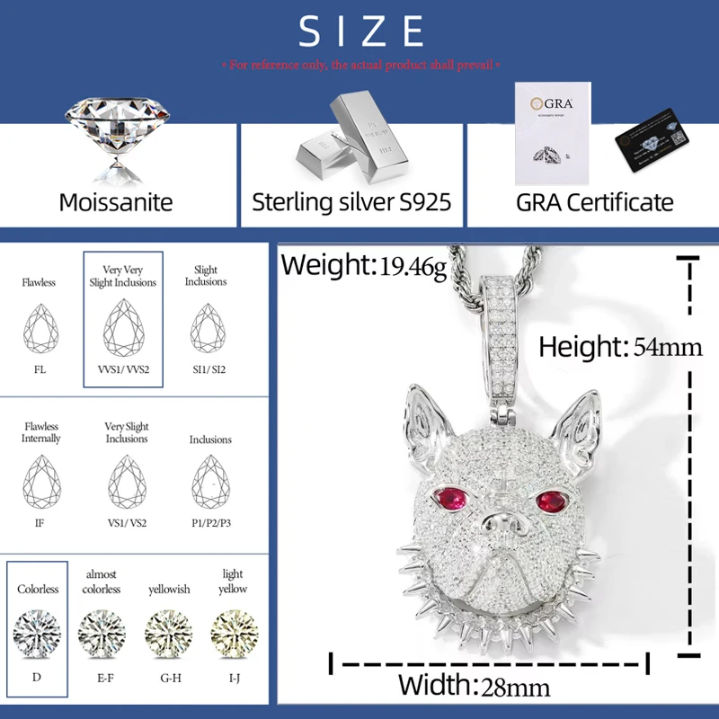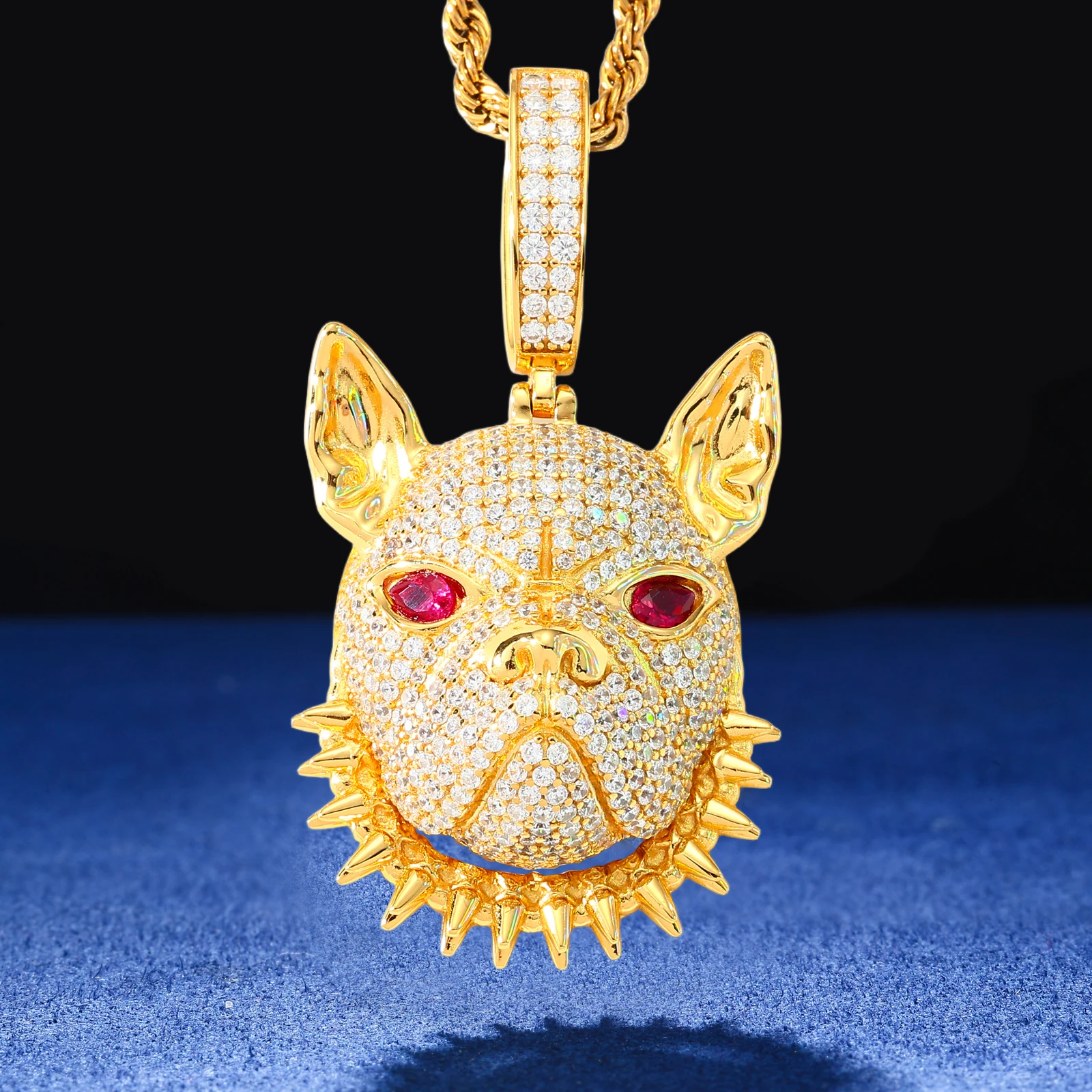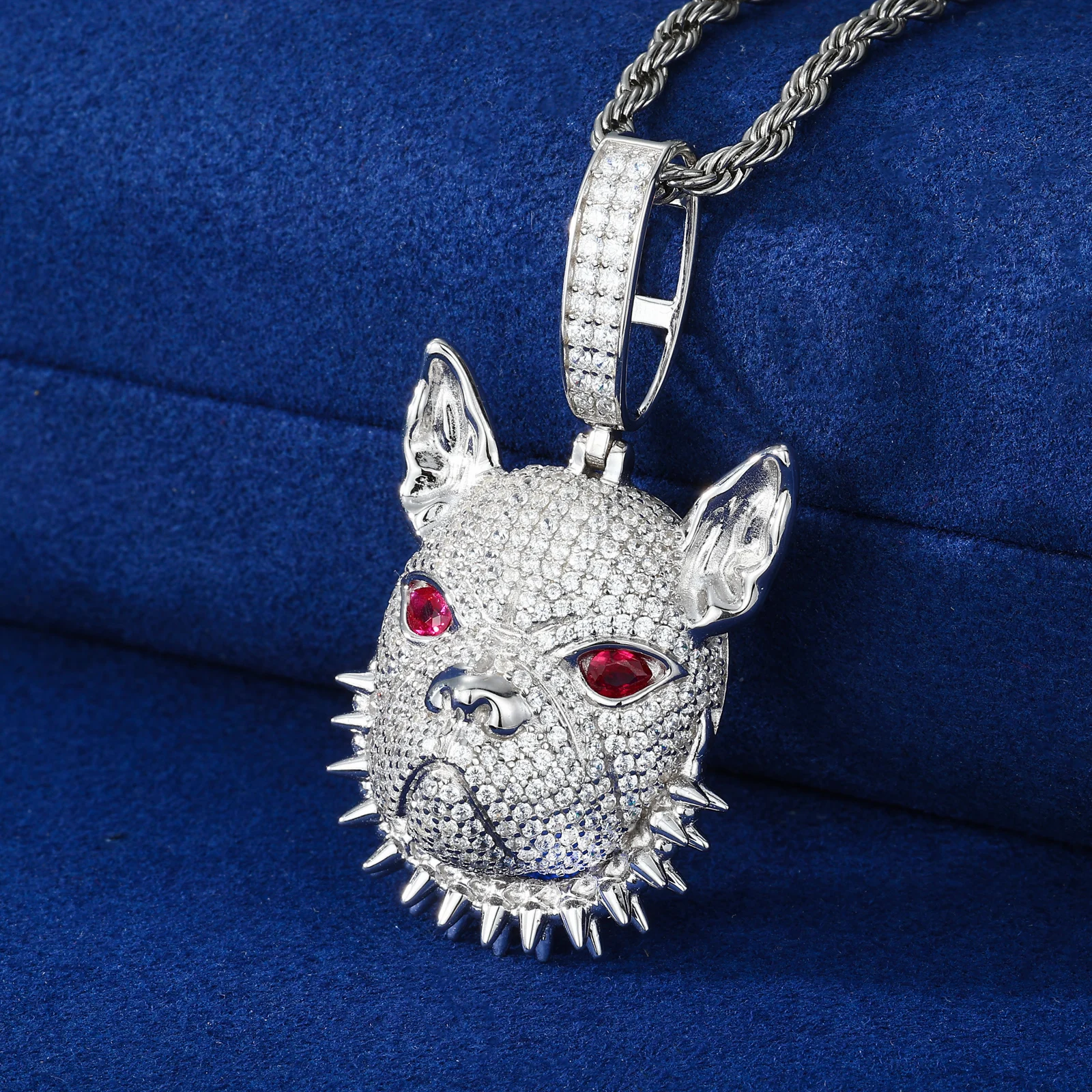Hip Hop Cartoon French Bulldog Pendant Necklace 925 Sterling Silver Iced Out Moissanite Jewelry Animal Charm Gift for Women Men