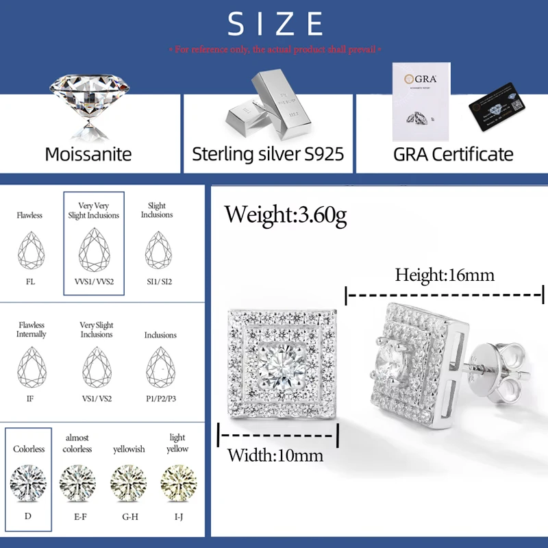 Hip Hop Classic Stud Earring for Men Women Iced Out D Color Moissanite 925 Sterling Silver Sparkling Earring Jewelry Accessories