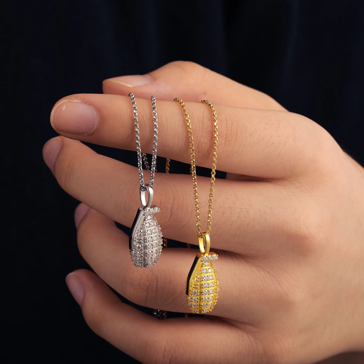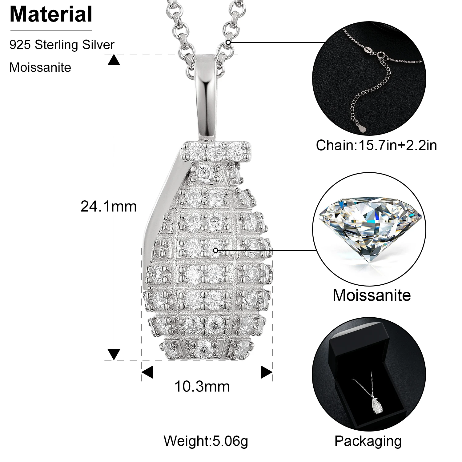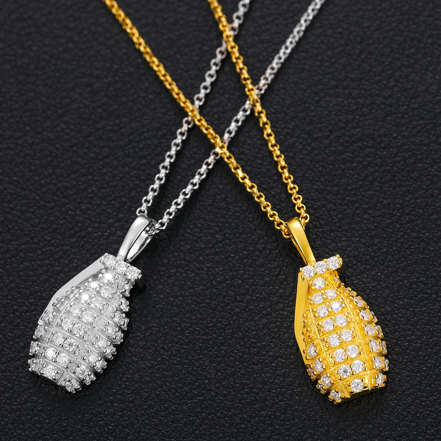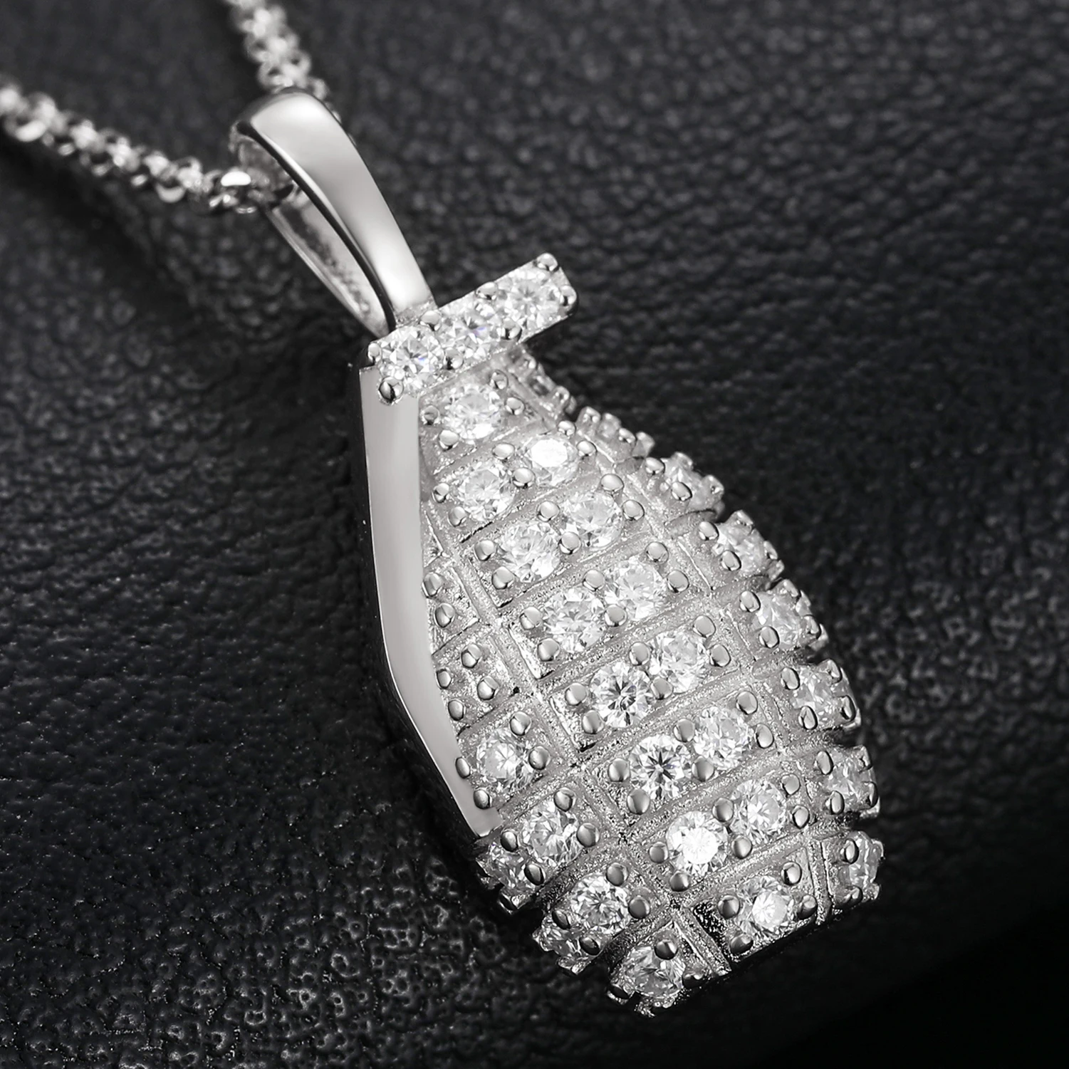 Hip hop Hand Grenade Gun Bullet Pendant 925 Sterling Silver Moissanite Diamond Hipster Man/Woman Bomb Necklaces