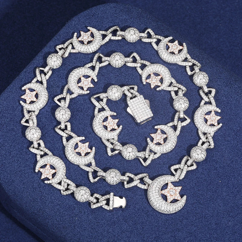 Iced Out D Color VVS1 Moissanite Moon Star Cuban Link Chain for Men Women 925 Sterling Silver Choker Necklace Hip Hop Jewelry