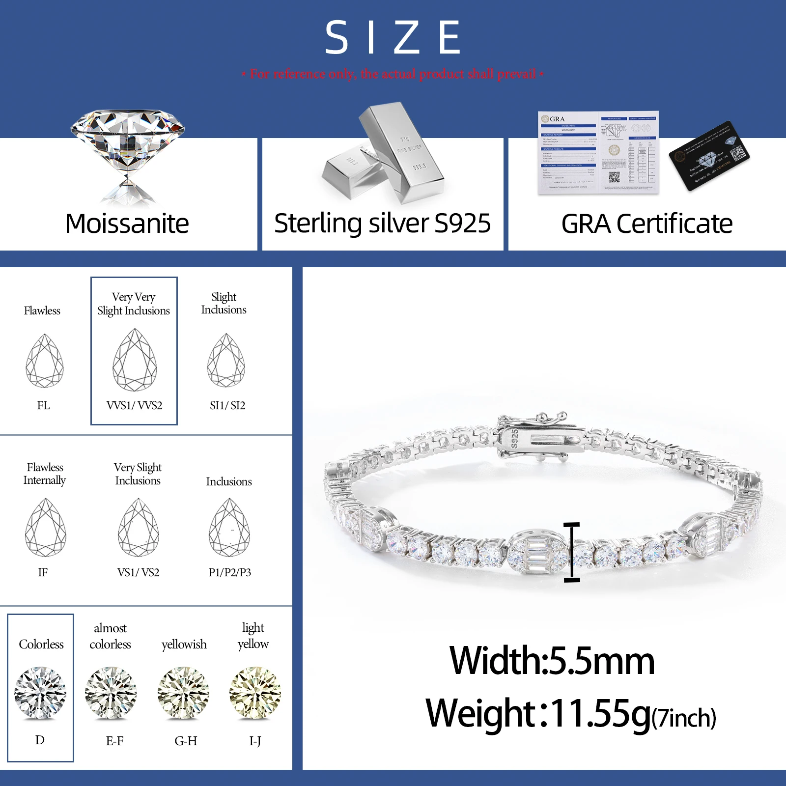Material: 925 Sterling silver Moissanite