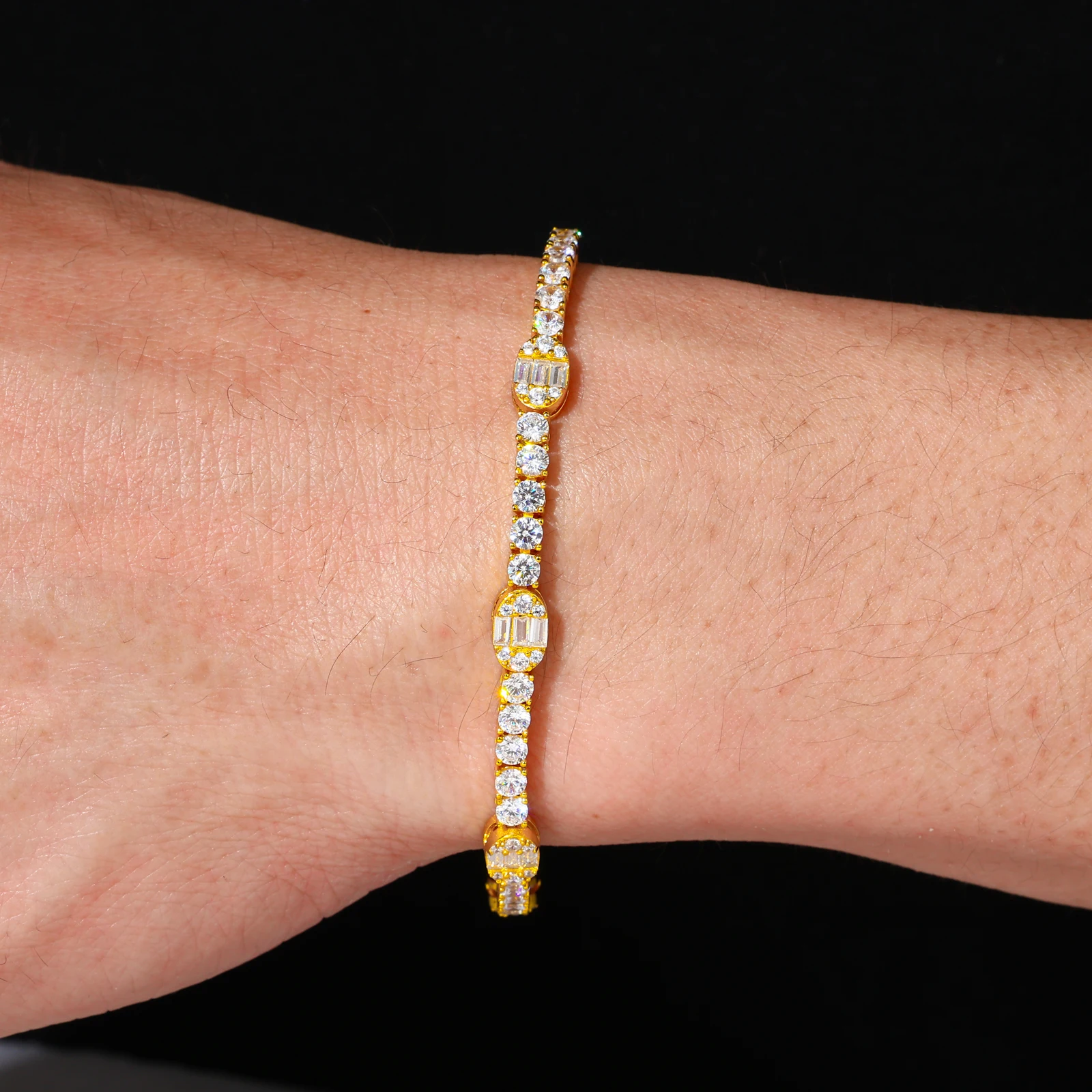 Luxury 3mm Tennis Chain Bracelet Iced Out Oval Moissanite Diamond S925 Sterling Silver Hip Hop Party Jewelry Gifts for Men/Women