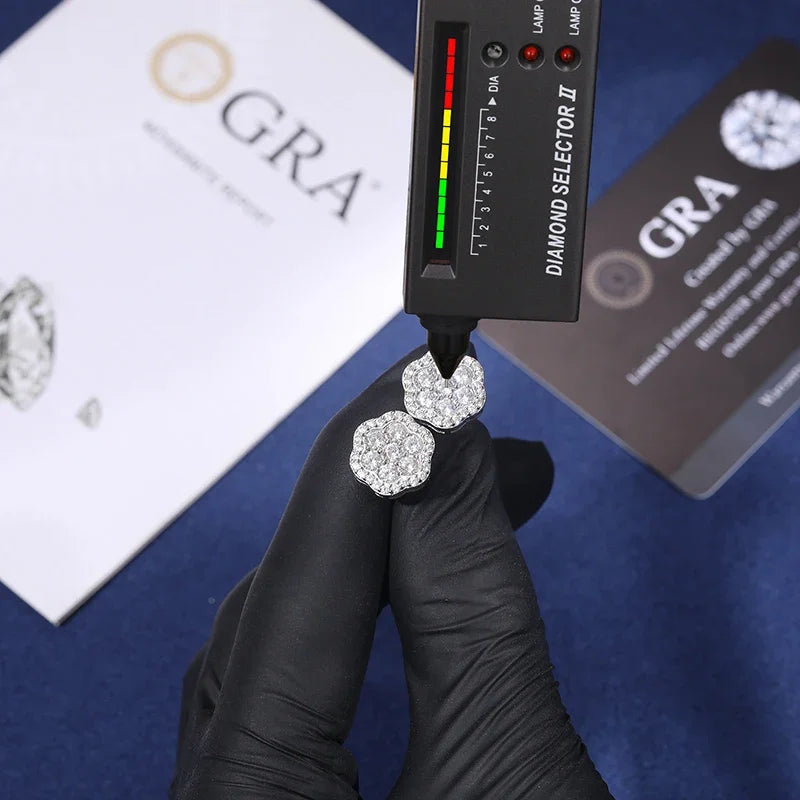 Luxury 925 Moissanite Flower Stud Earrings For Women Men Iced Out Bling Lab Created Diamond 925 Sterling Silver Hip Hop Jewelry