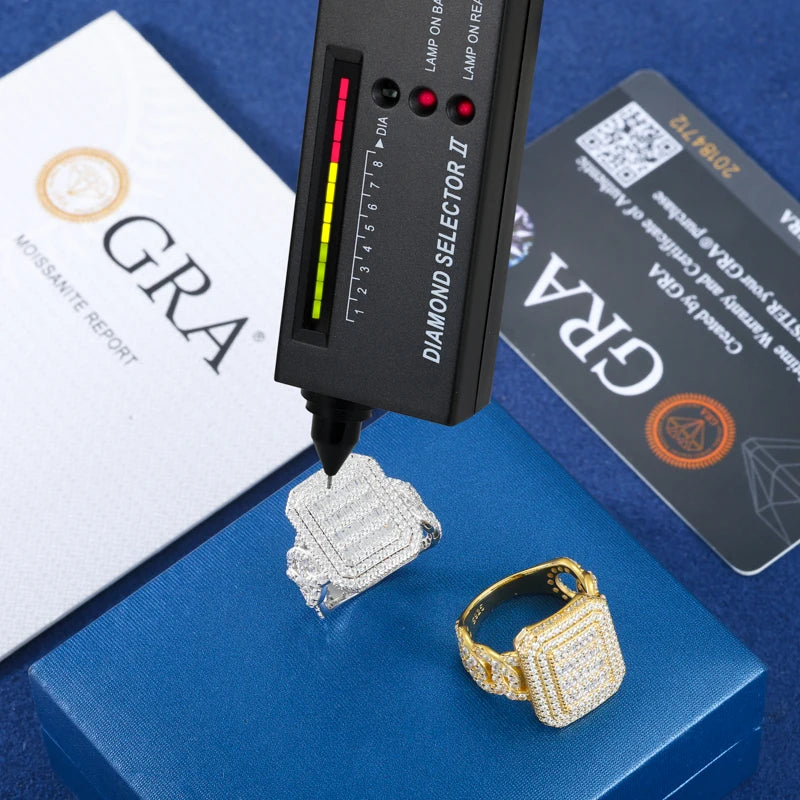Luxury Certified Full Moissanite Miami Cuban Ring for Men Women 925 Sterling Silver 18K Gold Plated HipHop Jewelry Eternity Ring