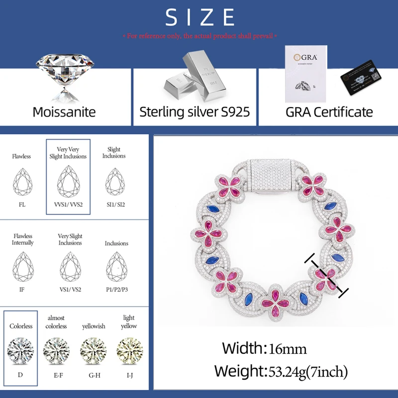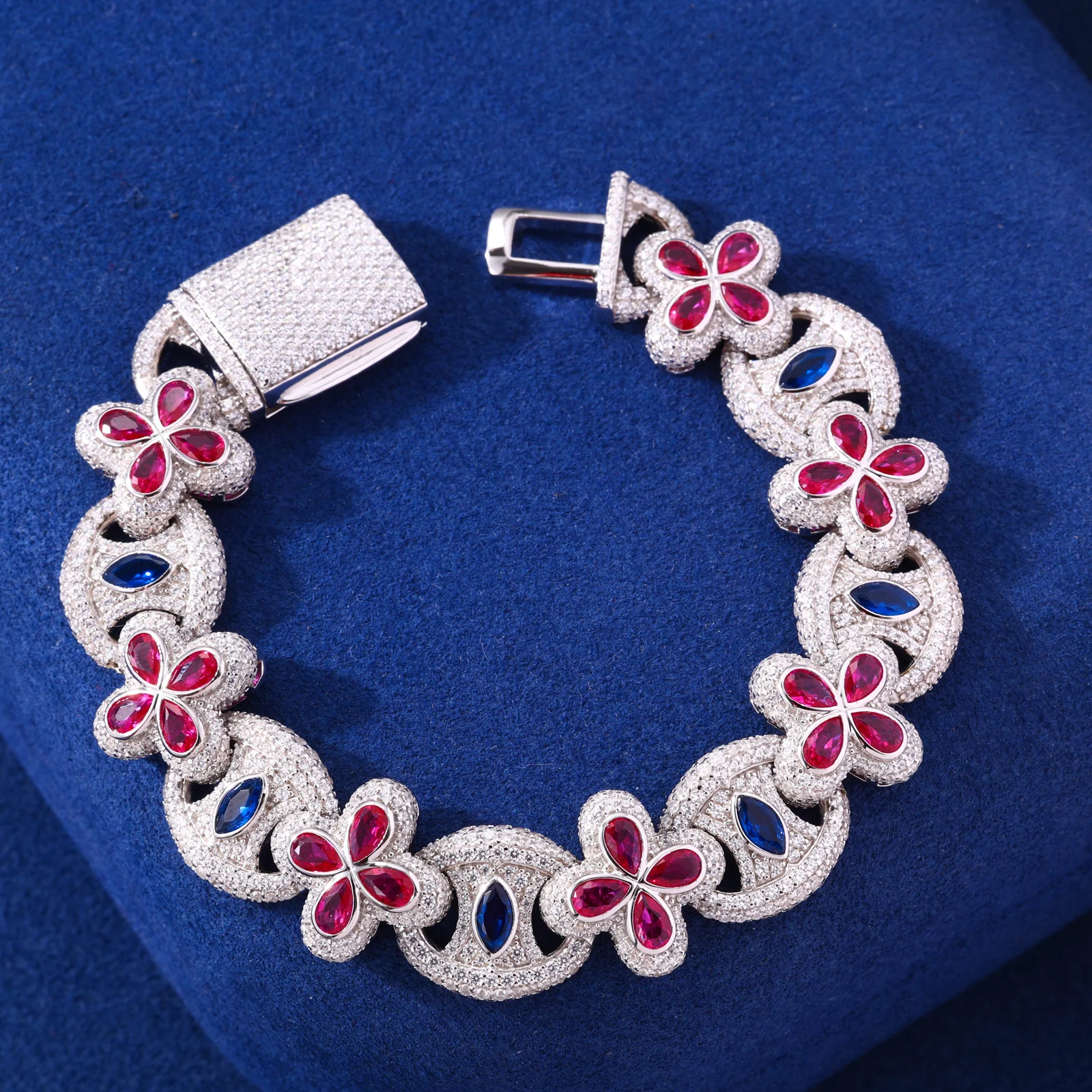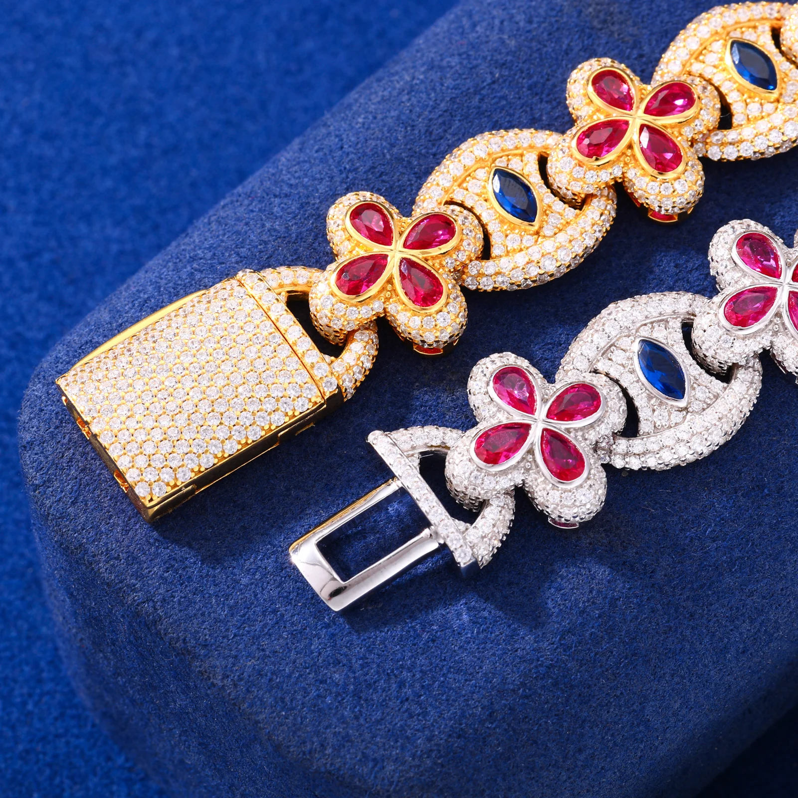 New 925 Sterling Sterling Lucky Clover Bracelet Iced Out Bling Moissanite Evil Eye Link Chain Luxury Hip Hop Party Jewelry Gifts