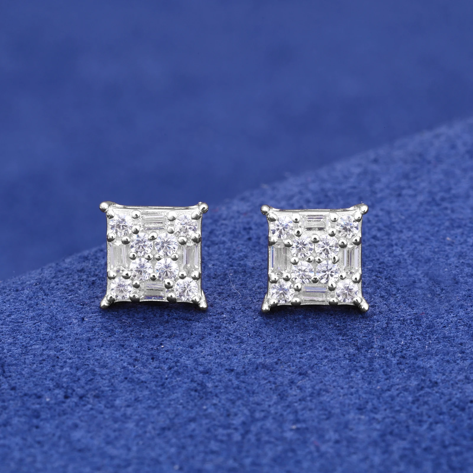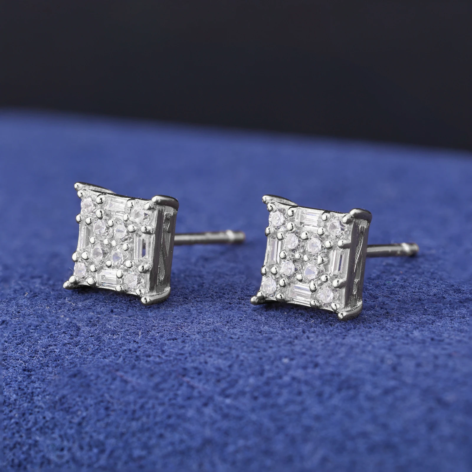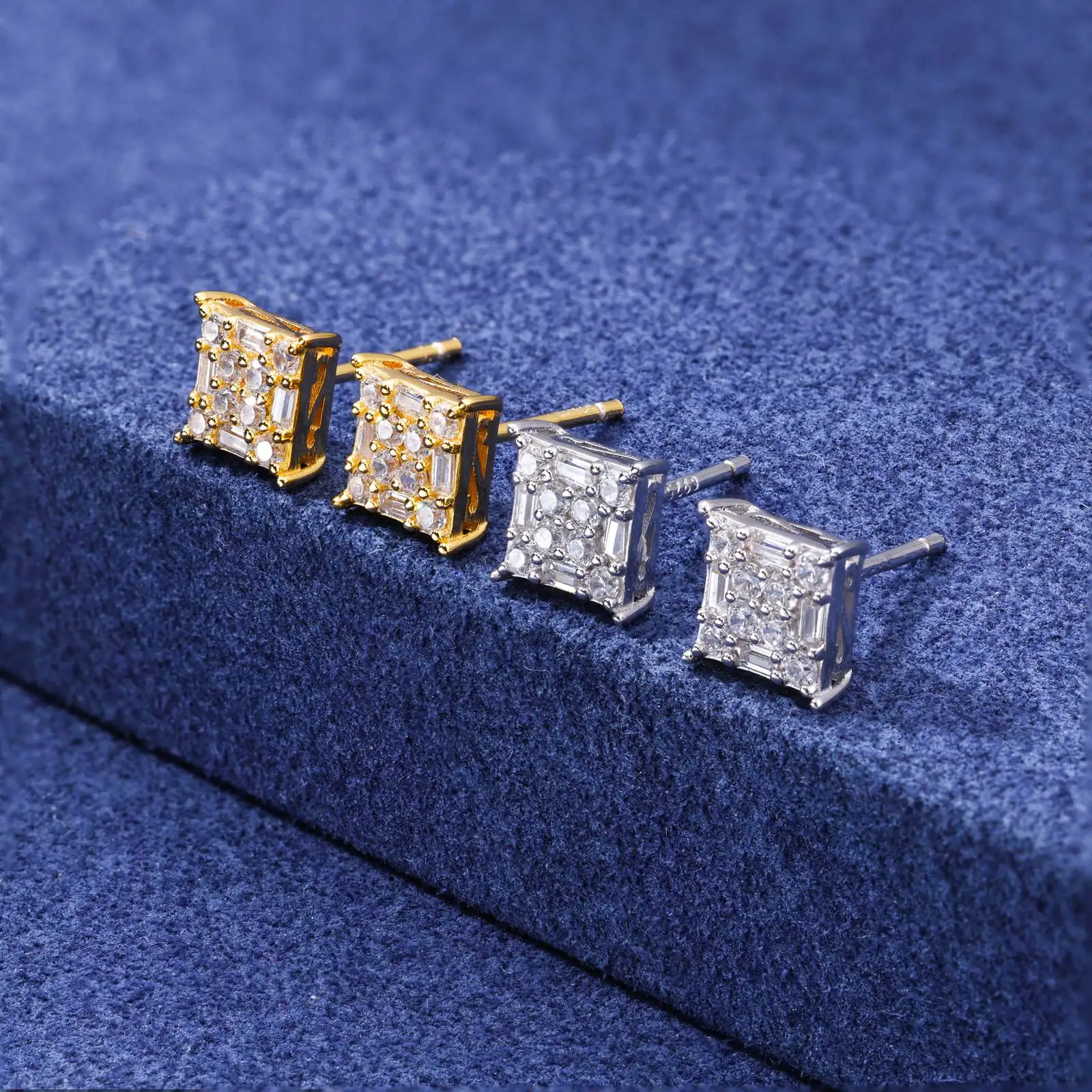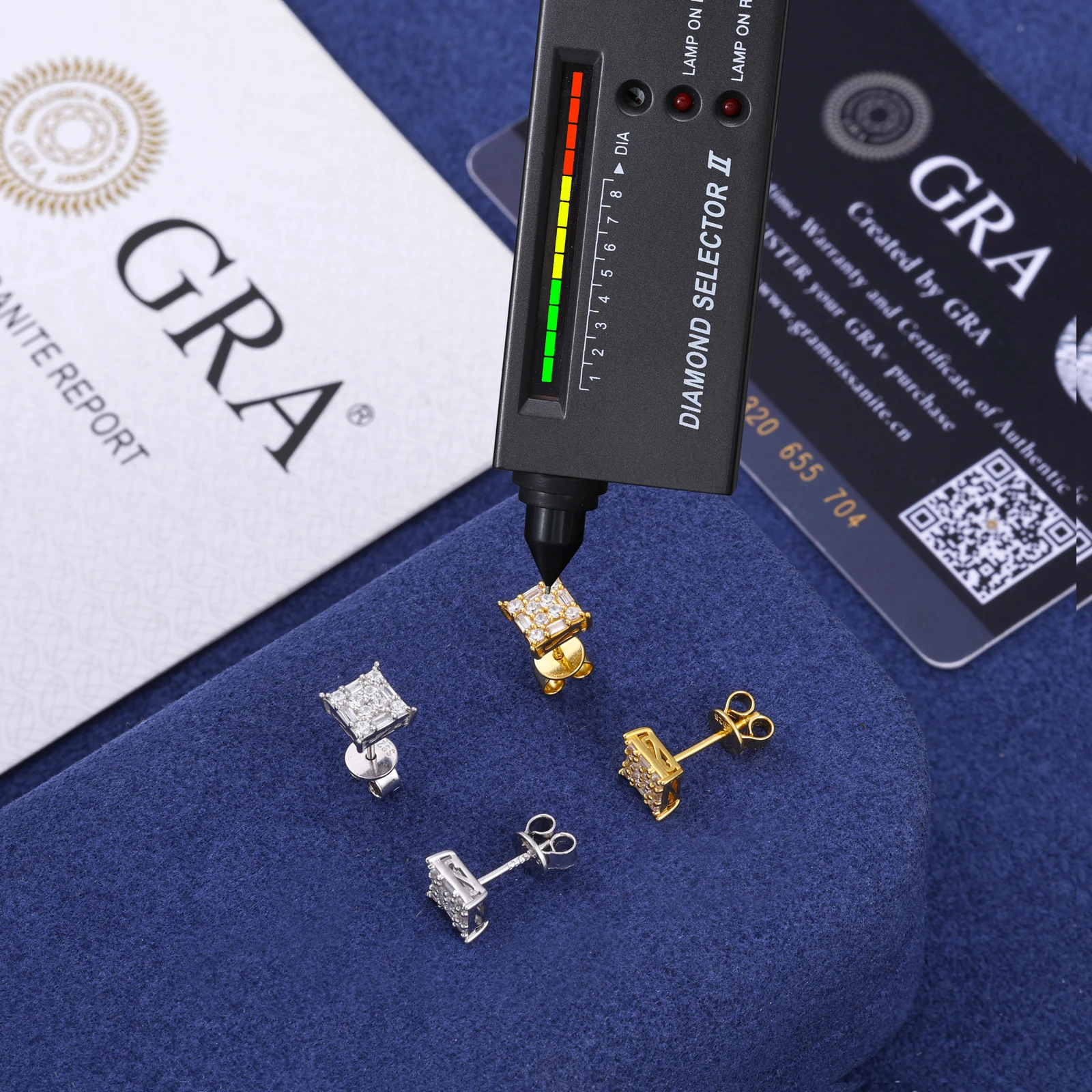 New Certified Baguettes Cut Moissanite Stud Earrings S925 Sterling Silver Geometric Earring for Men Women Pass Tester Jewelry