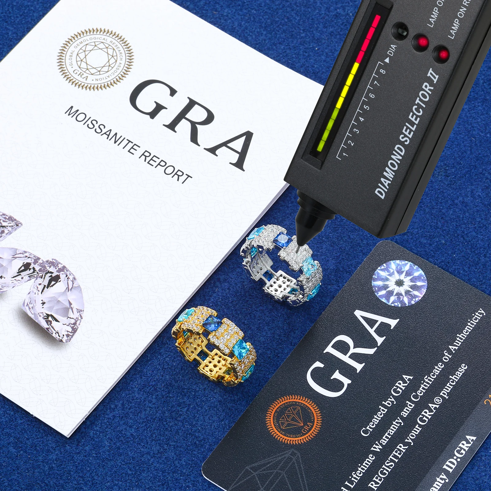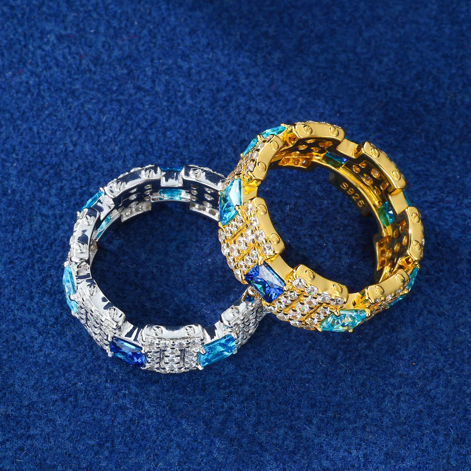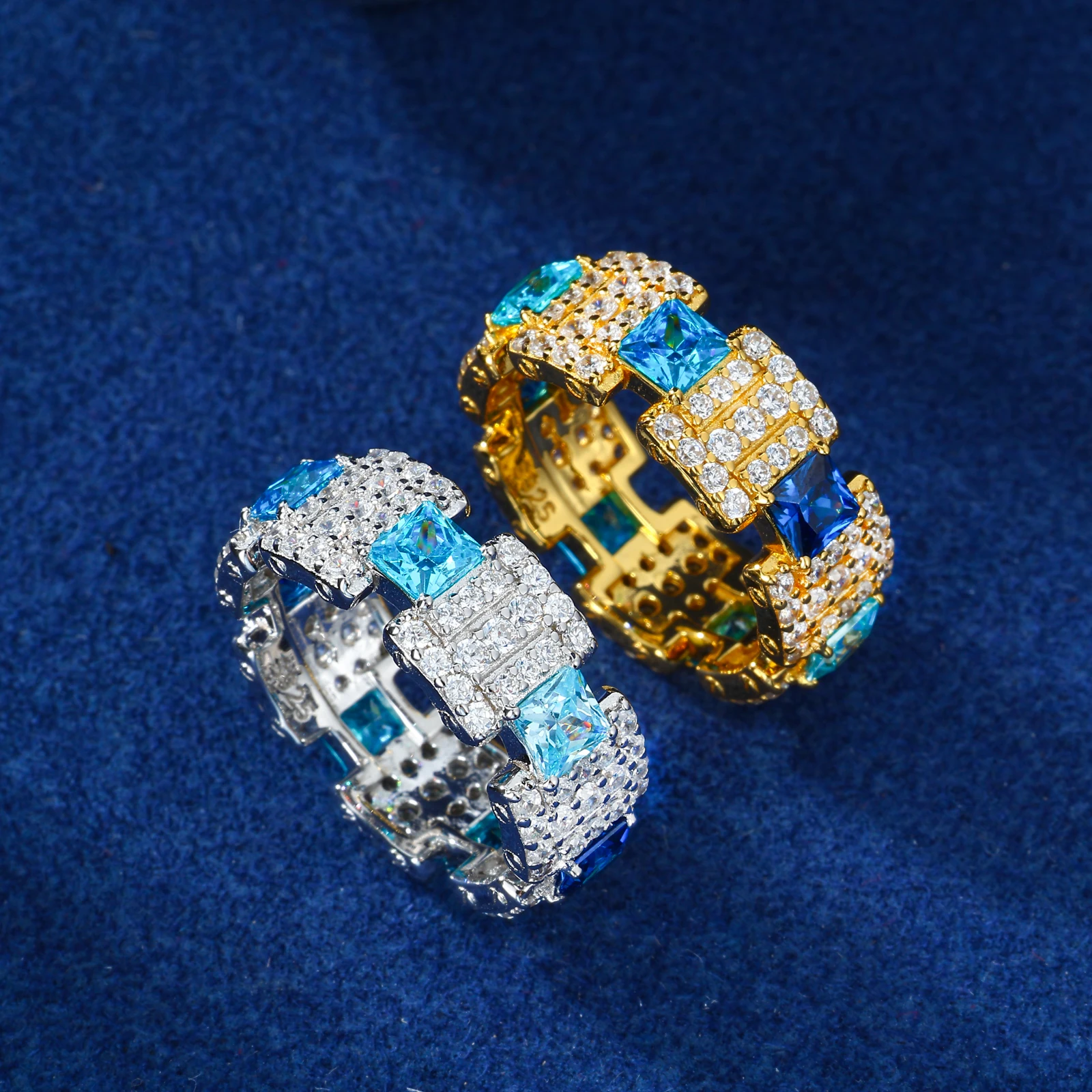 New Exquisite Gradient Blue Rings for Men Women 100% 925 Silver GRA Certified Full Moissanite Diamond Hip Hop Band Ring Jewelry