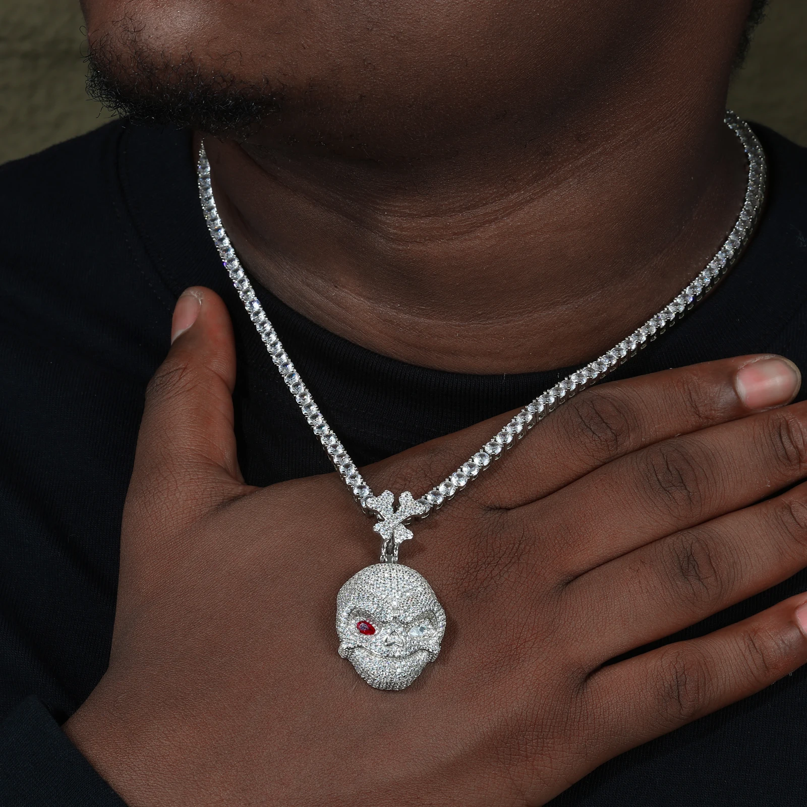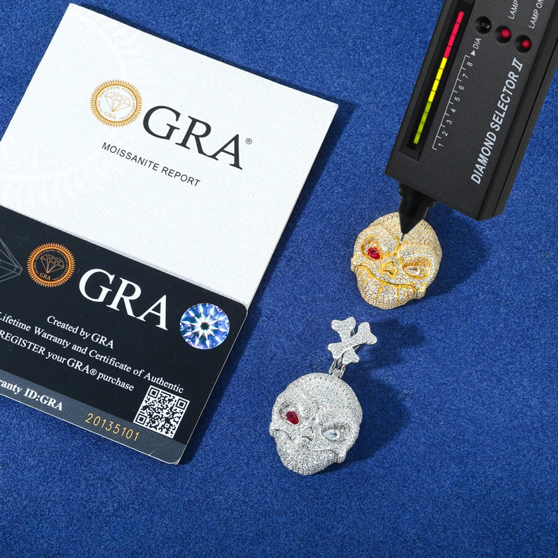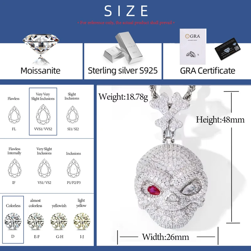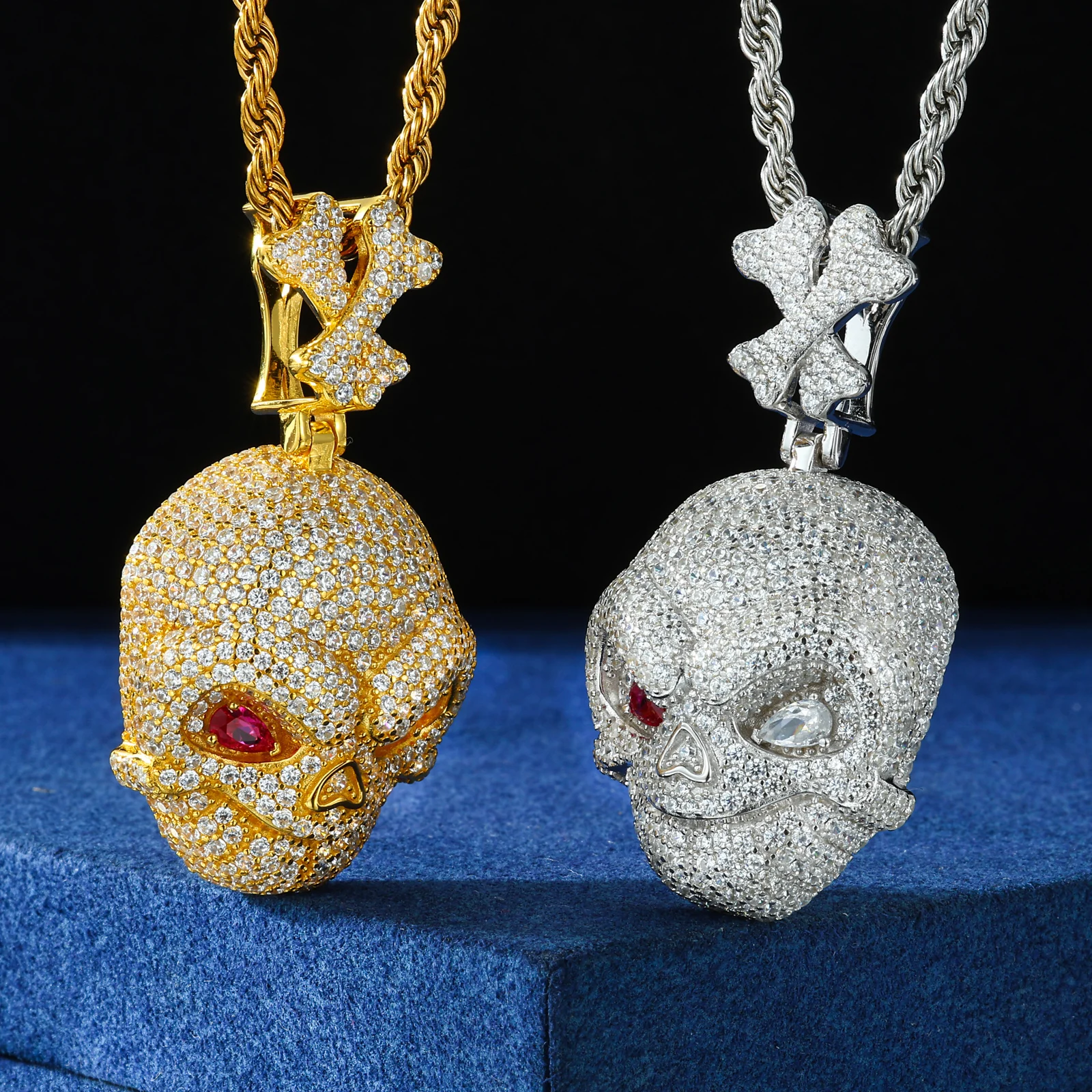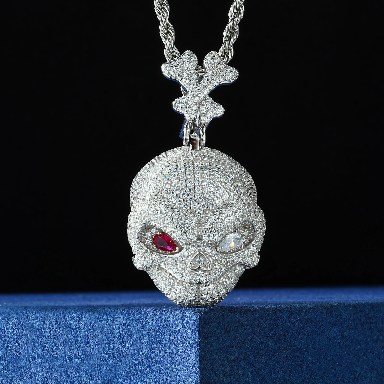 New Personalized Hip Hop Full Iced Out Moissanite Odd-eyed Skull Pendant Necklace For Men Solid Silver 925 Fine Charm Jewelry