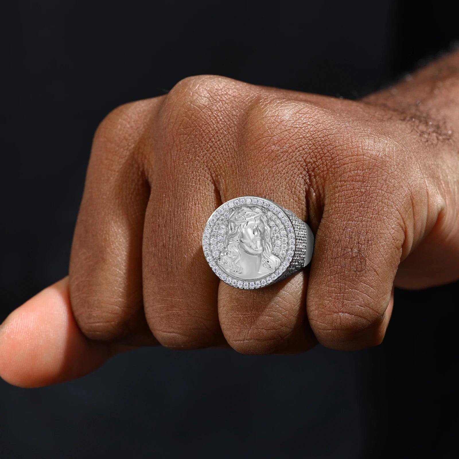New S925 Moissanite Jesus Head Ring Me/ Women Fashion Religious Amulet Accessories Hip Hop Punk Iced Out Sterling Silver Jewelry
