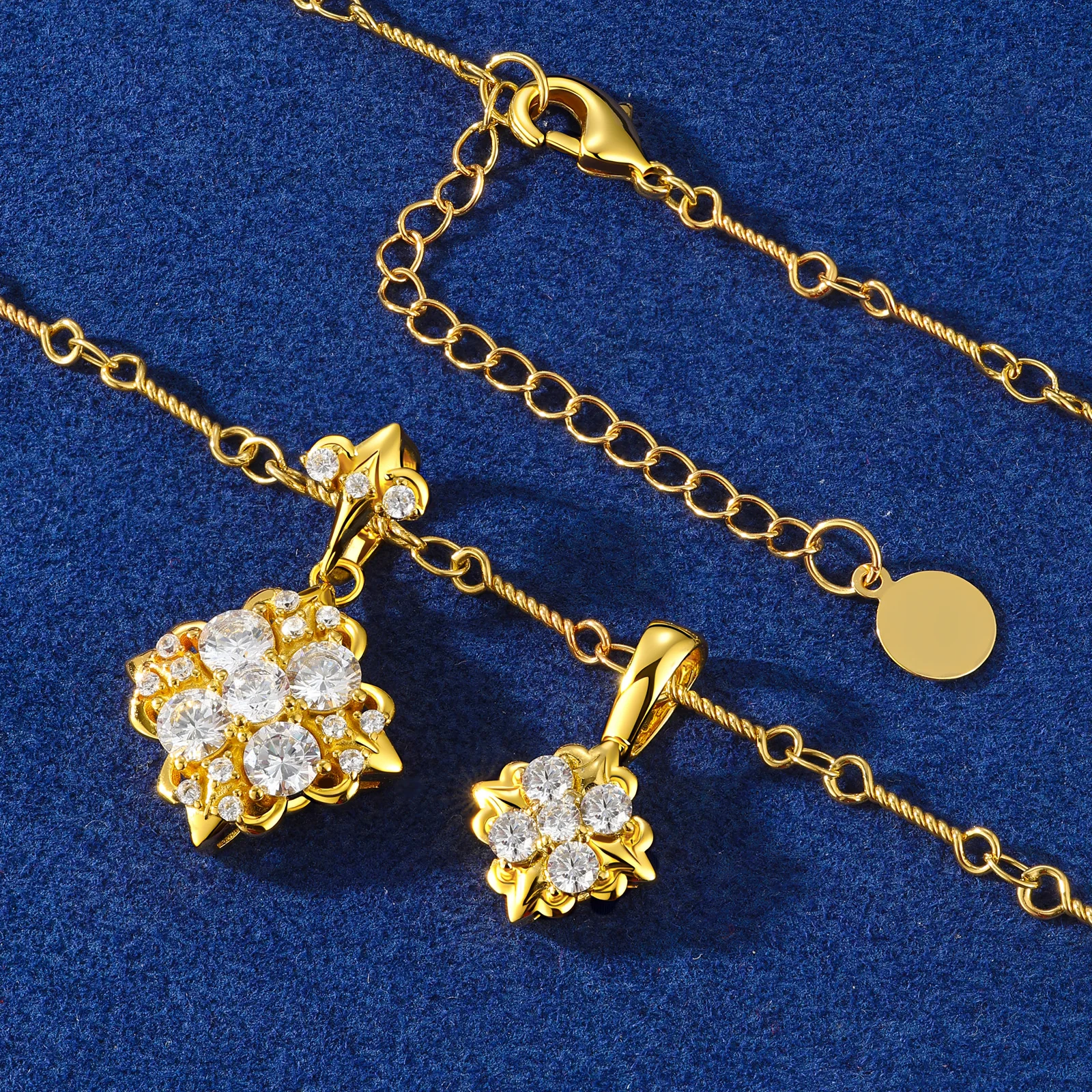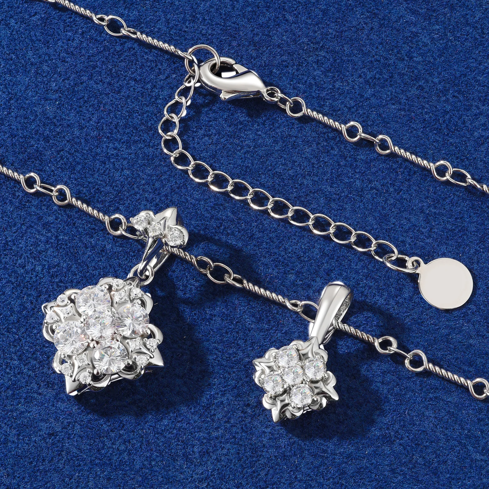The D VVS1 Moissanite charm adds a sparkling touch, making this necklace perfect for special occasions.