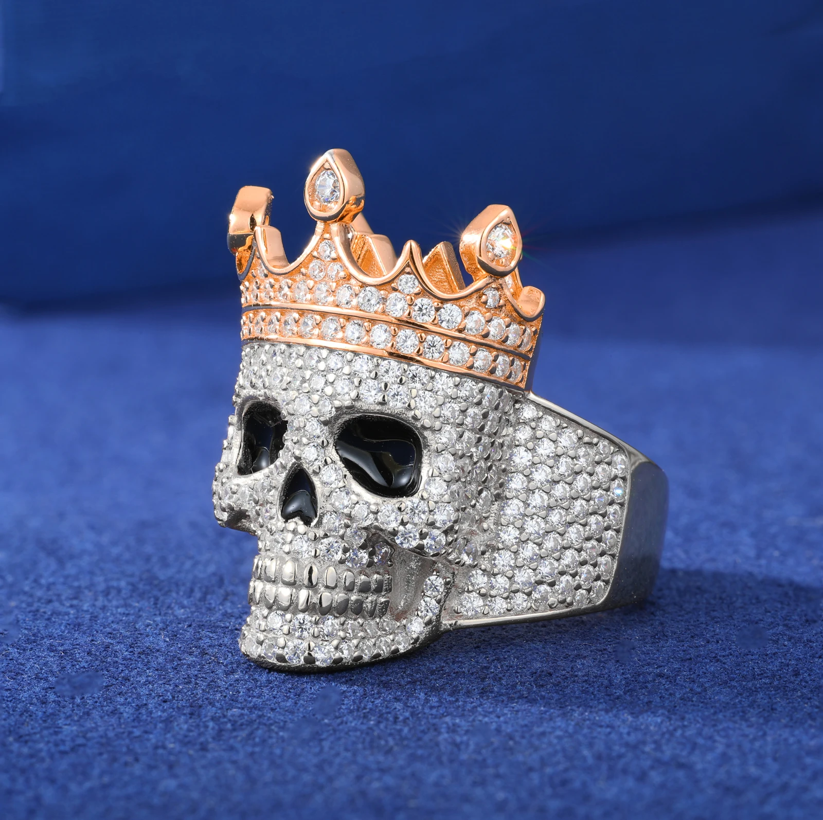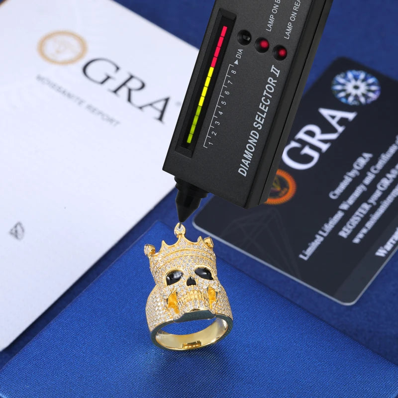 Ola Luxury Moissanite Crown Skull Ring For Men Lab Diamond Sterling Silver Iced Out Hip Hop Rings, Sparkling Jewelry for Special Events