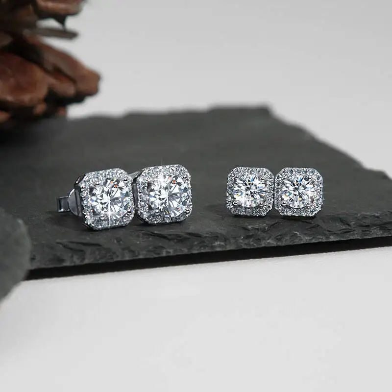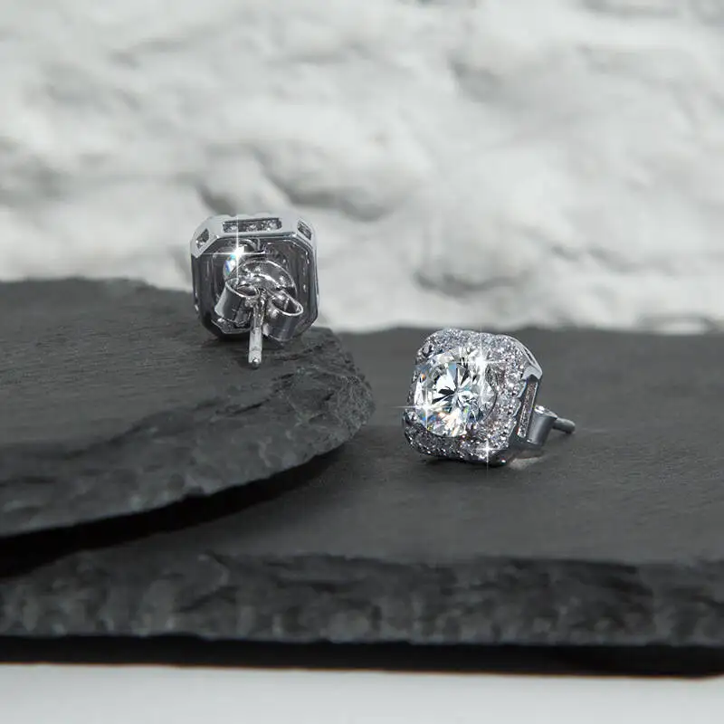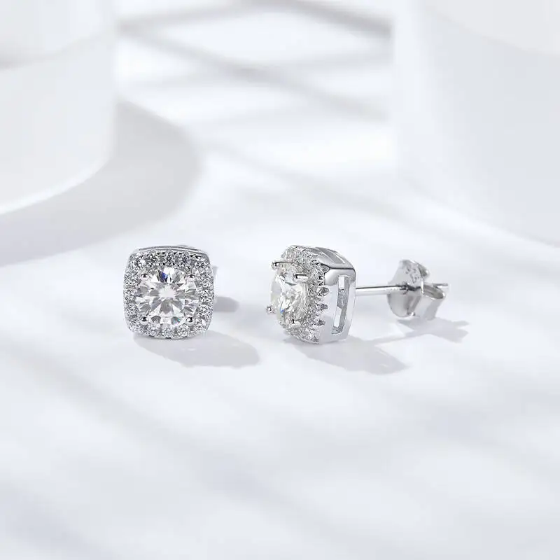 Sterling 925 Silver Square Shape Sparkling Moissanite Stud Earrings Delicate Bohemian Luxury Style Female Gift Fine Jewelry