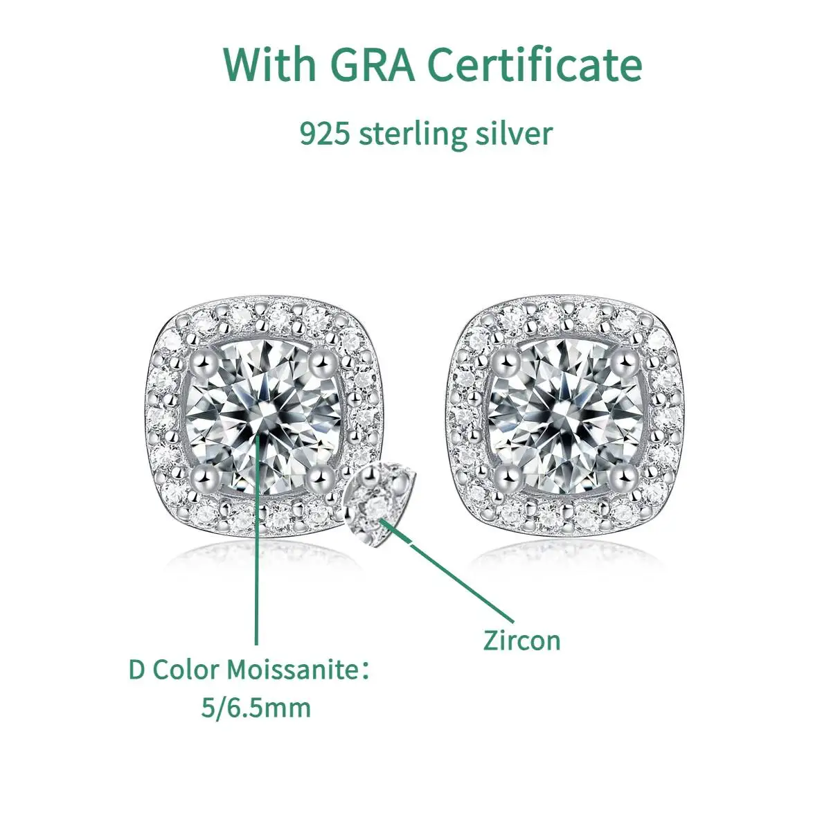 Ola Luxury Moissanite Stud Earrings For Women/Men 100% 925 Sterling Silver Earrings D Color Moissanite Certified By GRA
