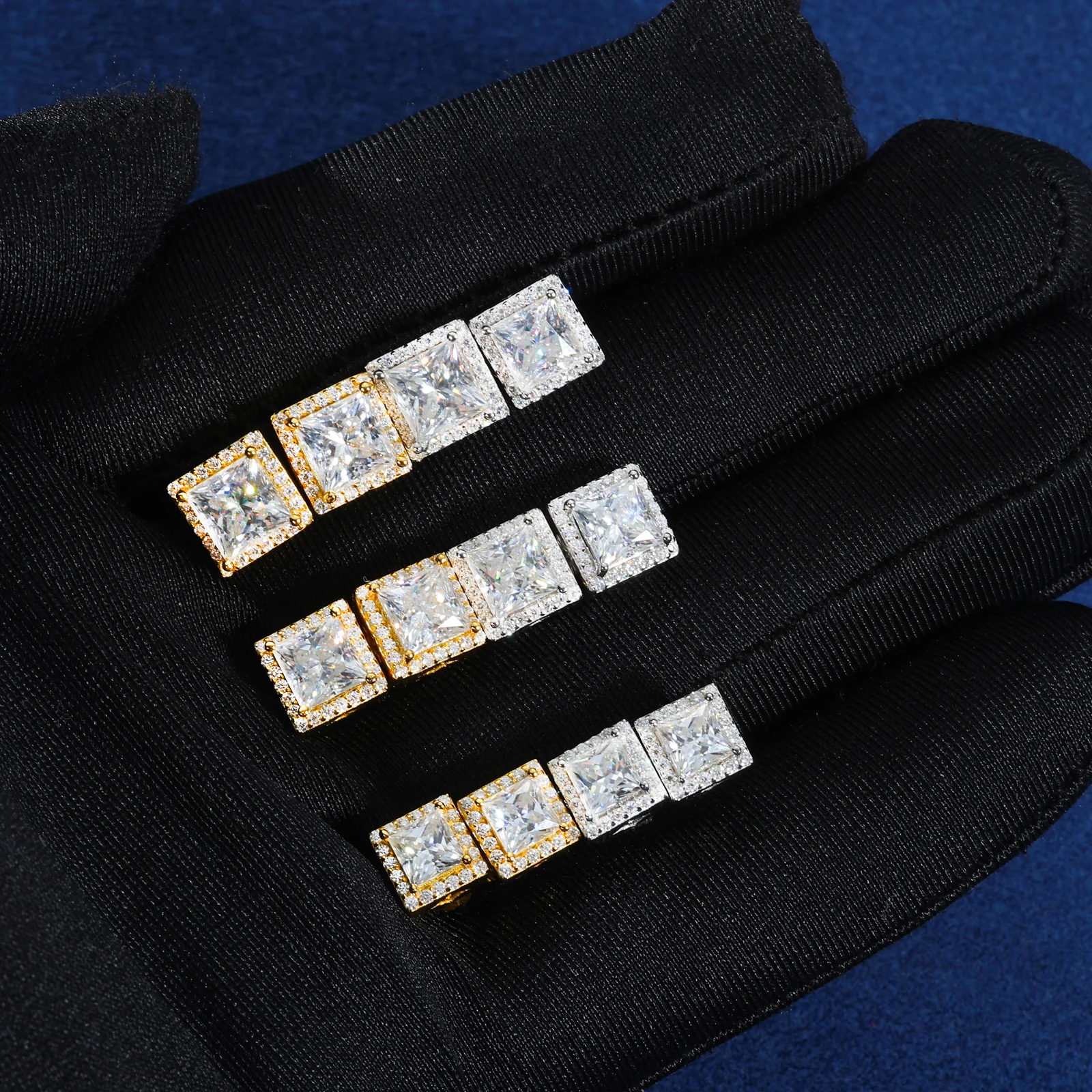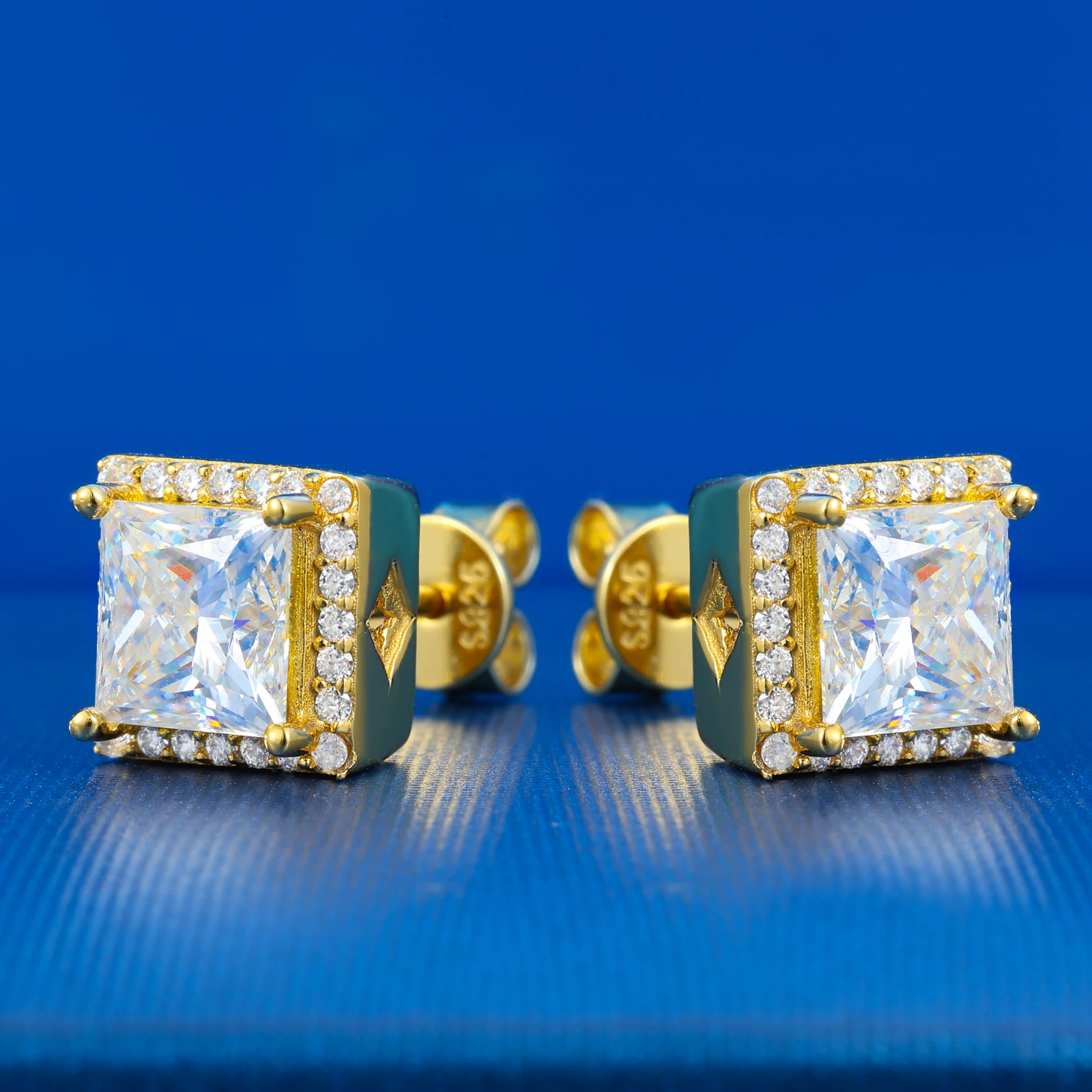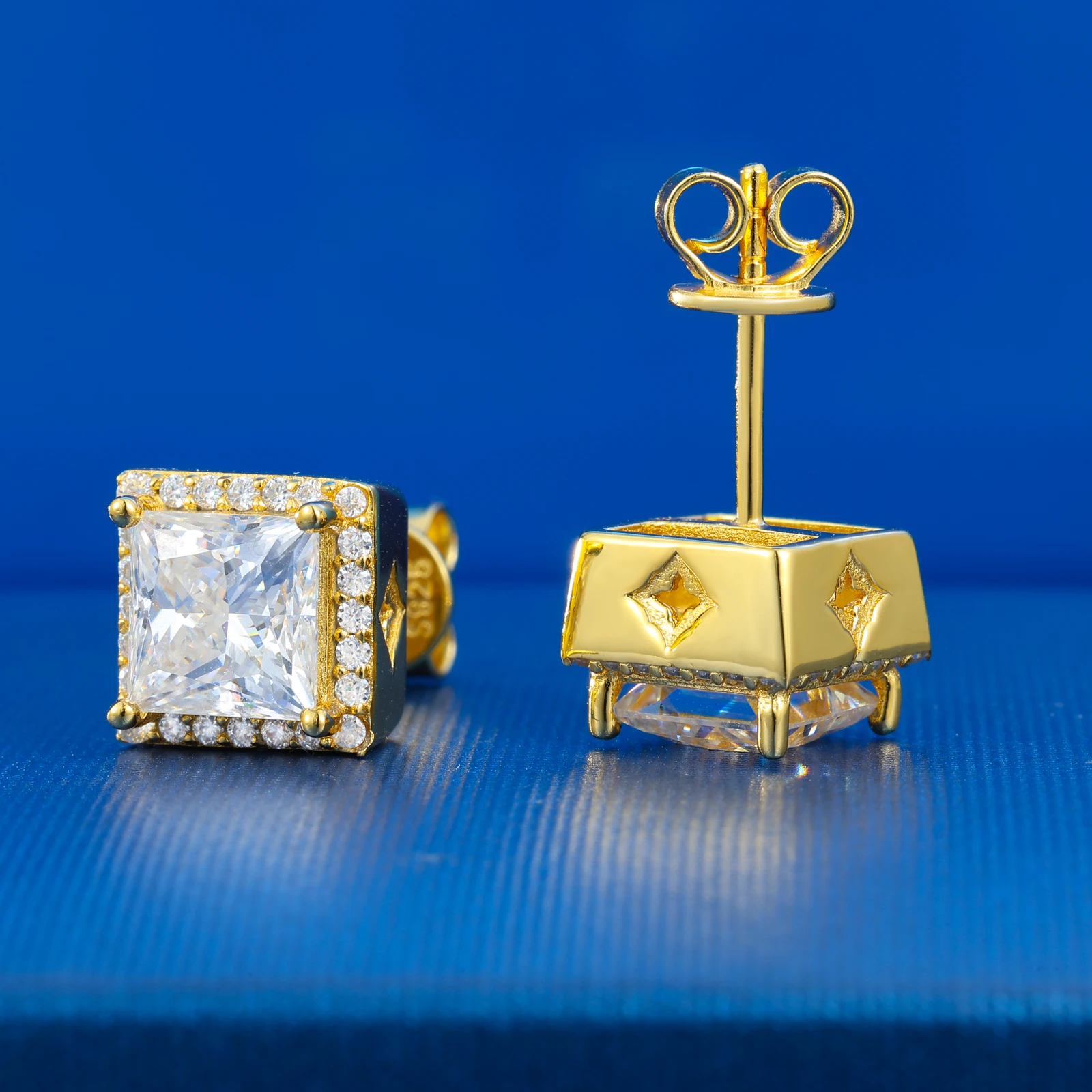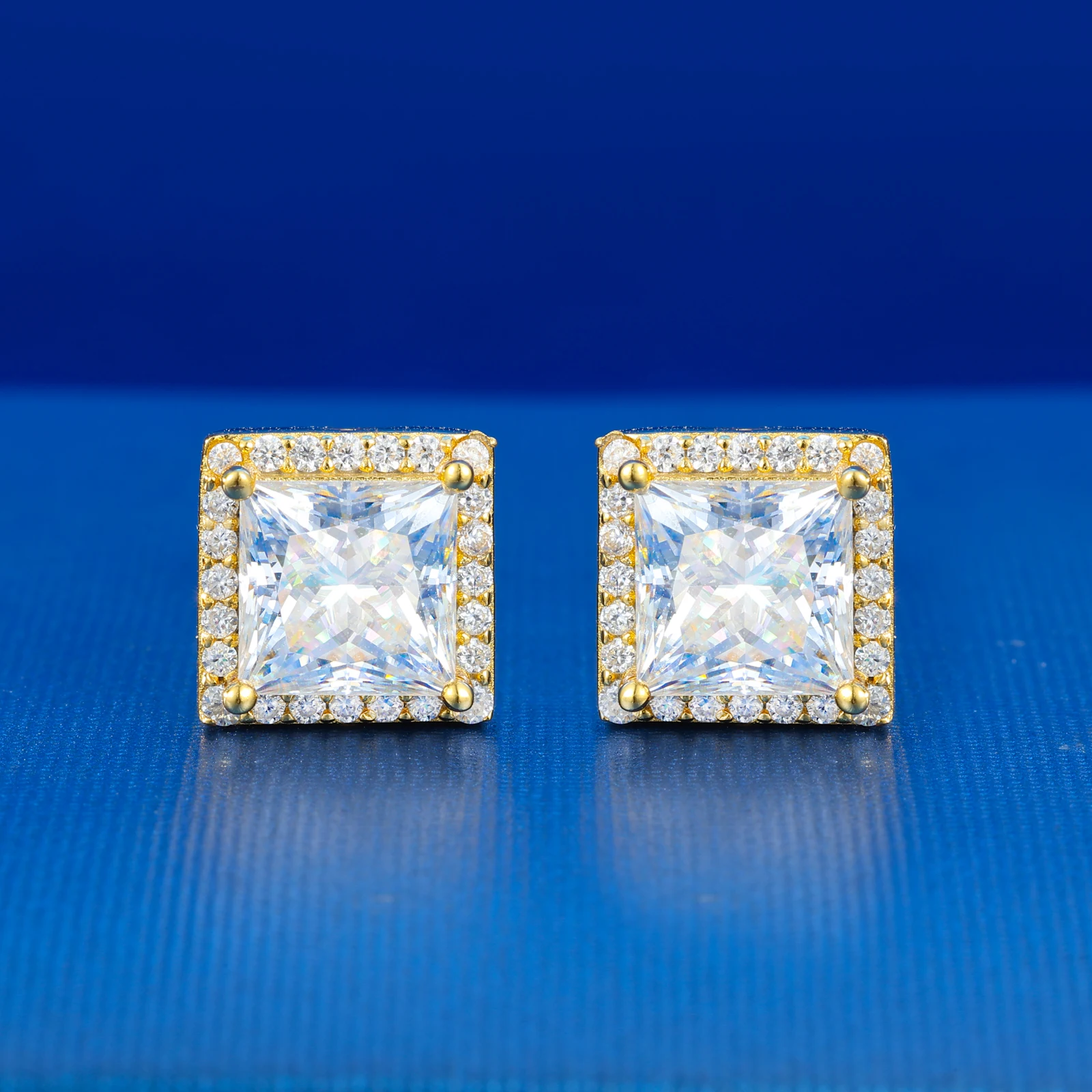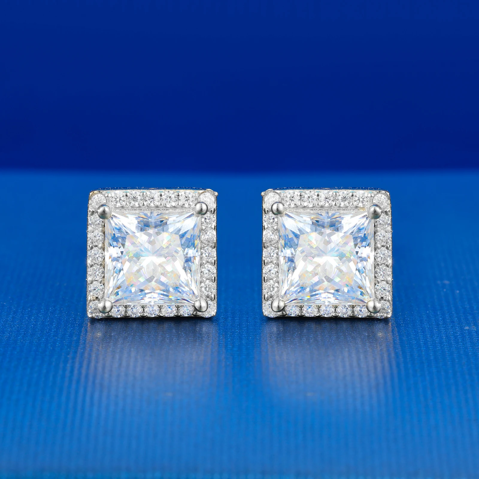 Pass Diamond Tester Moissanite Halo Stud Earrings For Woman Man 925 Sterling Silver Princess Cut Earrings Luxury Fine Jewelry
