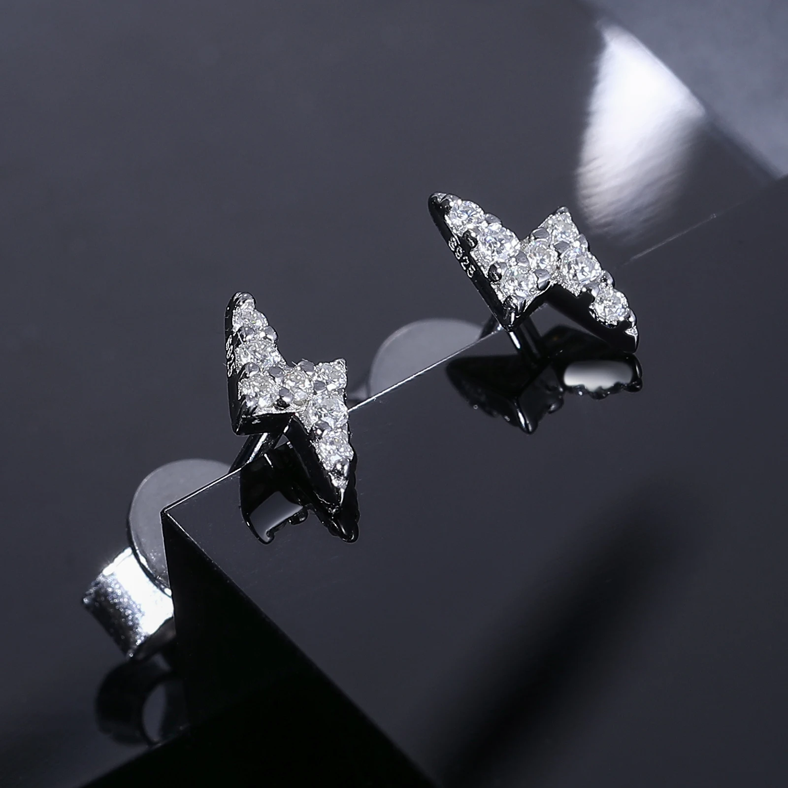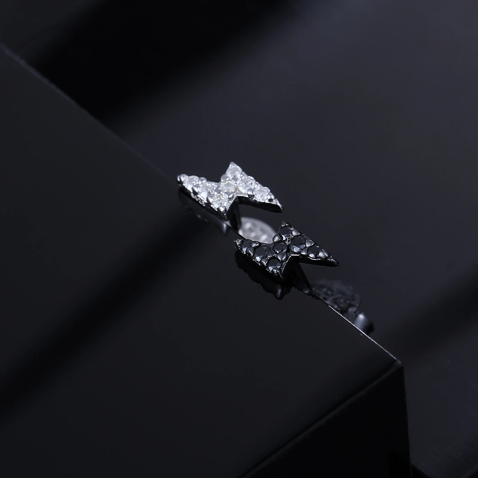 Tiny D VVS Black White Moissanite 925 Sterling Silver Fashion Lightning Stud Earrings Women/Men Exquisite Student Girlfriend Jewelry
