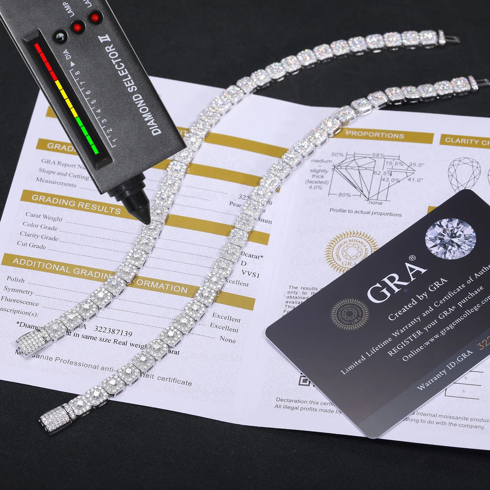 Unisex Cuban Chain 6mm Width Chain S925 Bracelet VVS1 Moissanite With Certificate For Men/Women Hip Hop Jewelry Gift